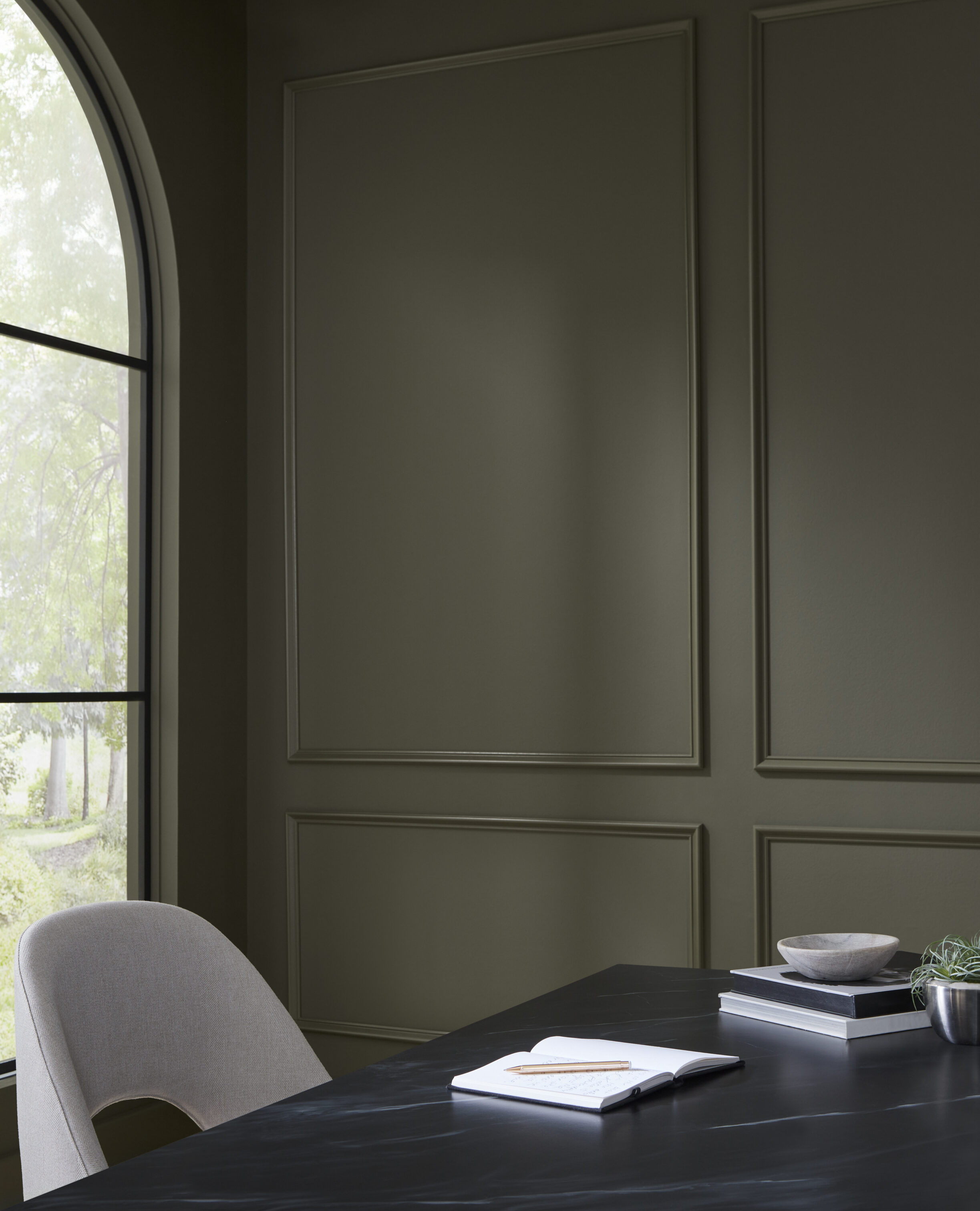 Um verde profundo, orgânico e sofisticado, que traz para dentro de casa a beleza serena da natureza, com um toque contemporâneo e acolhedor.
